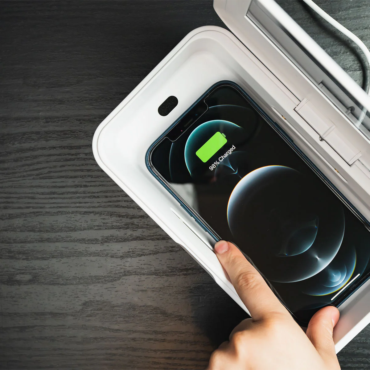 CleanTray Charge | Quickly Kills 99.99% of Germs | Built-in Wireless Charger—